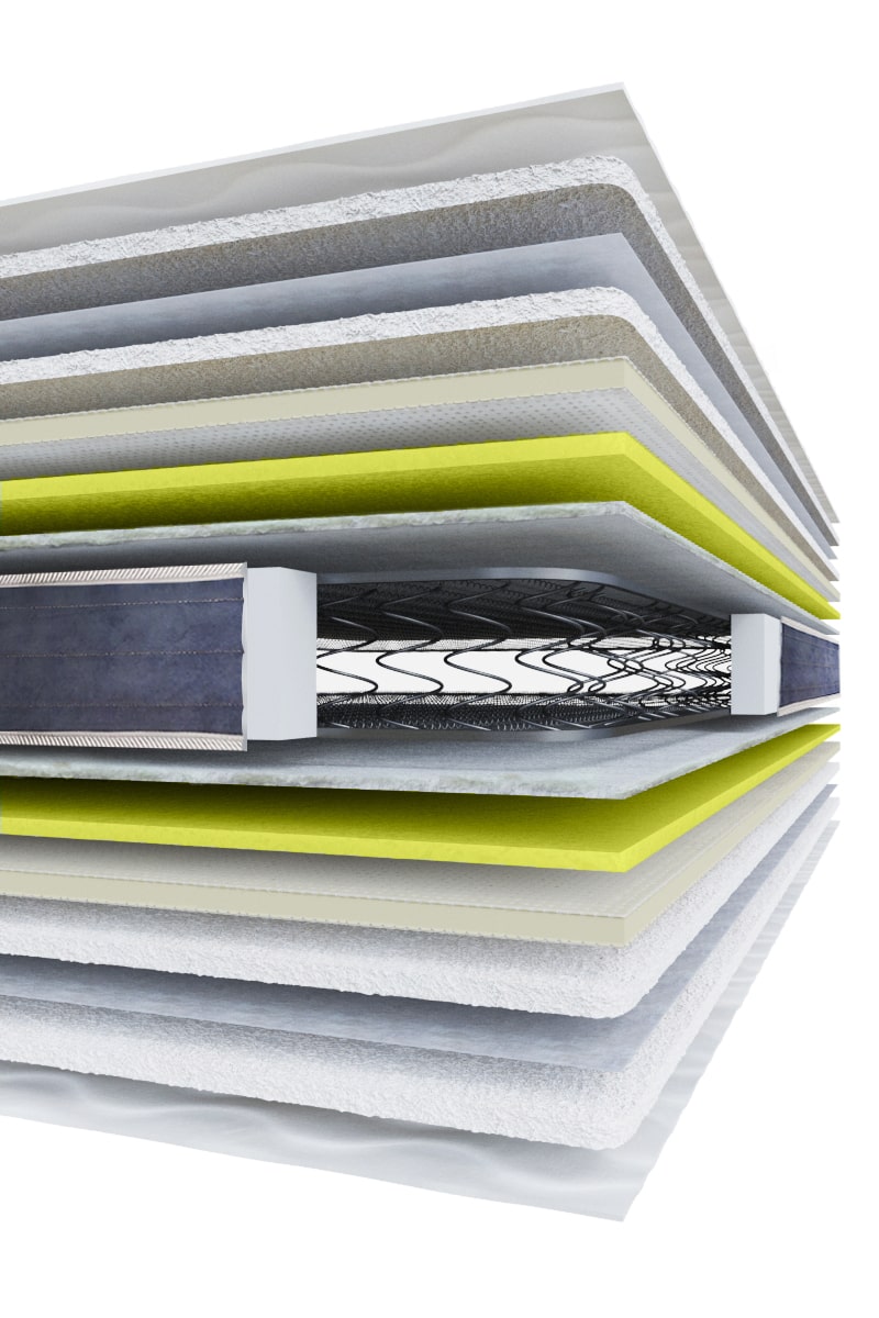 Το στρώμα Luxus είναι διπλής όψεως. Τα παρακάτω υλικά εφαρμόζονται και στις δύο πλευρές του στρώματος: